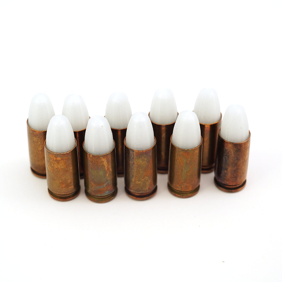 *** Important Note: These are inert dummy rounds — there’s no propellant, no primer, and they cannot fire. They’re made to fit 9mm pistols but are aftermarket accessories. They are not connected to, approved by, or endorsed by any firearms or ammunition manufacturer or company.